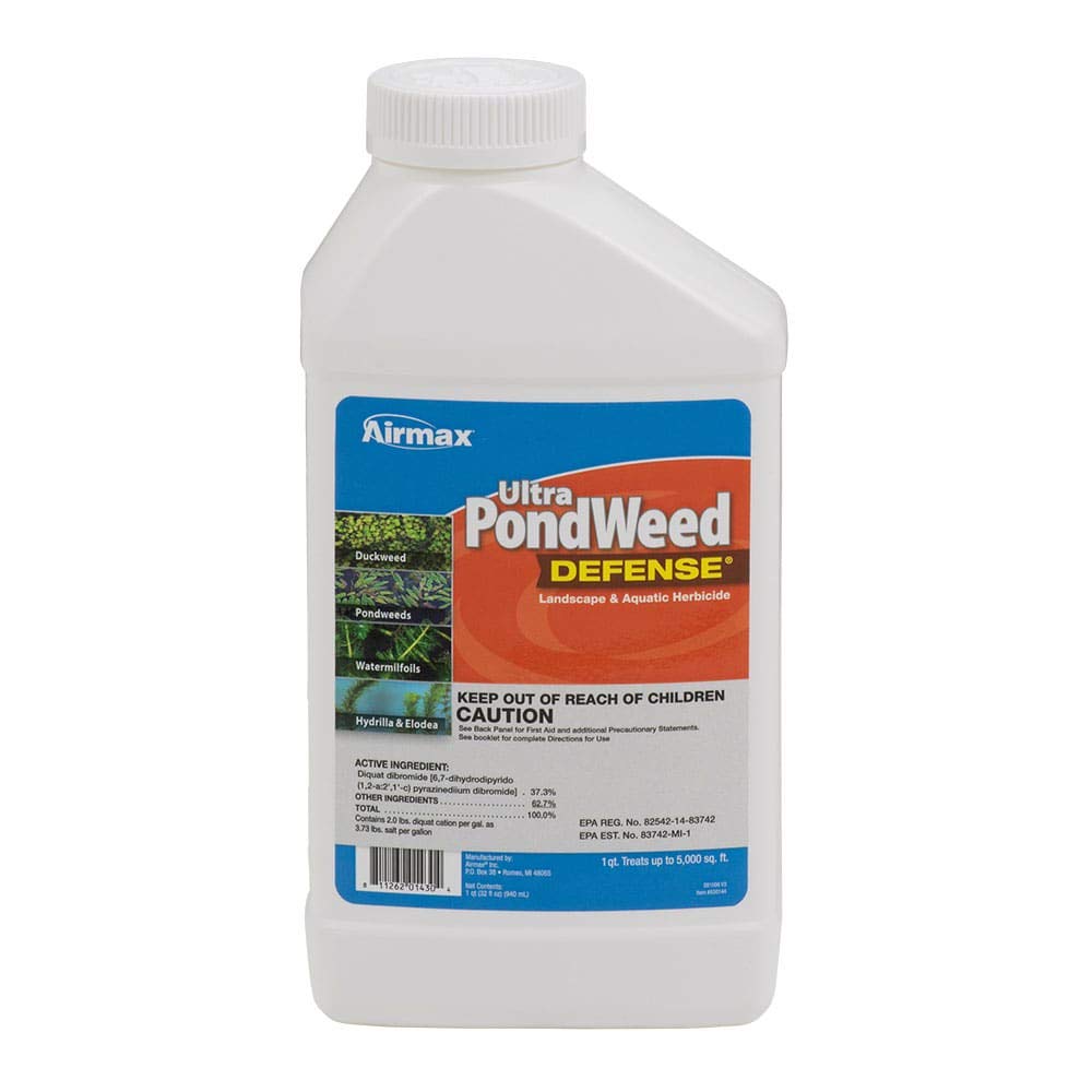 Airmax Ultra Pondweed Defense Aquatic Weed & Plant Killer, Easy Spray Application to Clean & Clear Large Pond & Lake Water, Liquid Treatment Control Concentrate, Fish, Pet & Animal Safe, 1 Quart