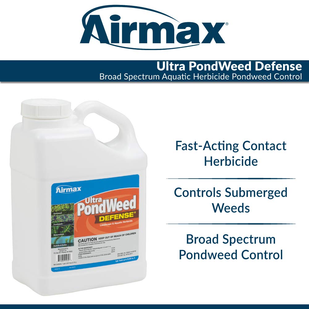 Airmax Ultra Pondweed Defense Aquatic Weed & Plant Killer, Easy Spray Application to Clean & Clear Large Pond & Lake Water, Liquid Treatment Control Concentrate, Fish, Pet & Animal Safe, 1 Gallon