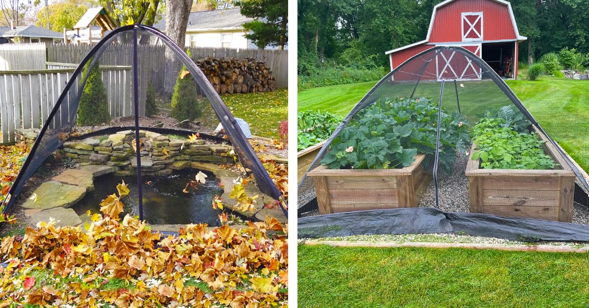 EasyPro PCT1014 Heavy Duty Deluxe Pond and Garden Cover Protective Tent Dome Netting | 10 x 14 ft | 3/8 � Mesh | Protection from Debris | Sturdy Poles and Zipper Included | UV Resistant