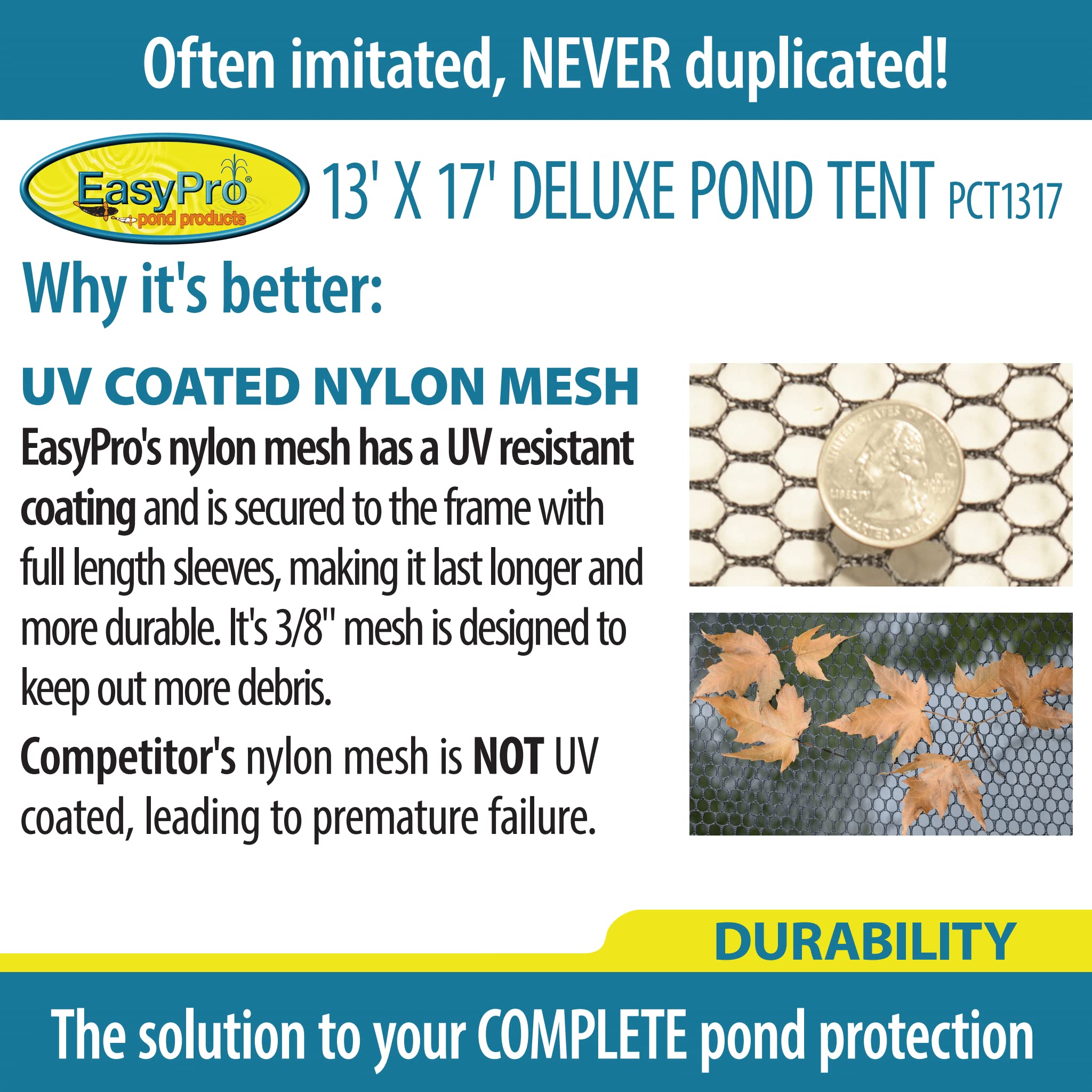 EasyPro PCT1317 Heavy Duty Deluxe Pond and Garden Cover Protective Tent Dome Netting | 13 x 17 ft | 3/8 � Mesh | Protection from Debris | Sturdy Poles and Zipper Included | UV Resistant