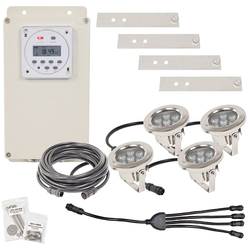 EasyPro WFL4-100 AquaShine LED Fountain Lights | 150 ft Power Cord | Digital Timer and Remote Control Included