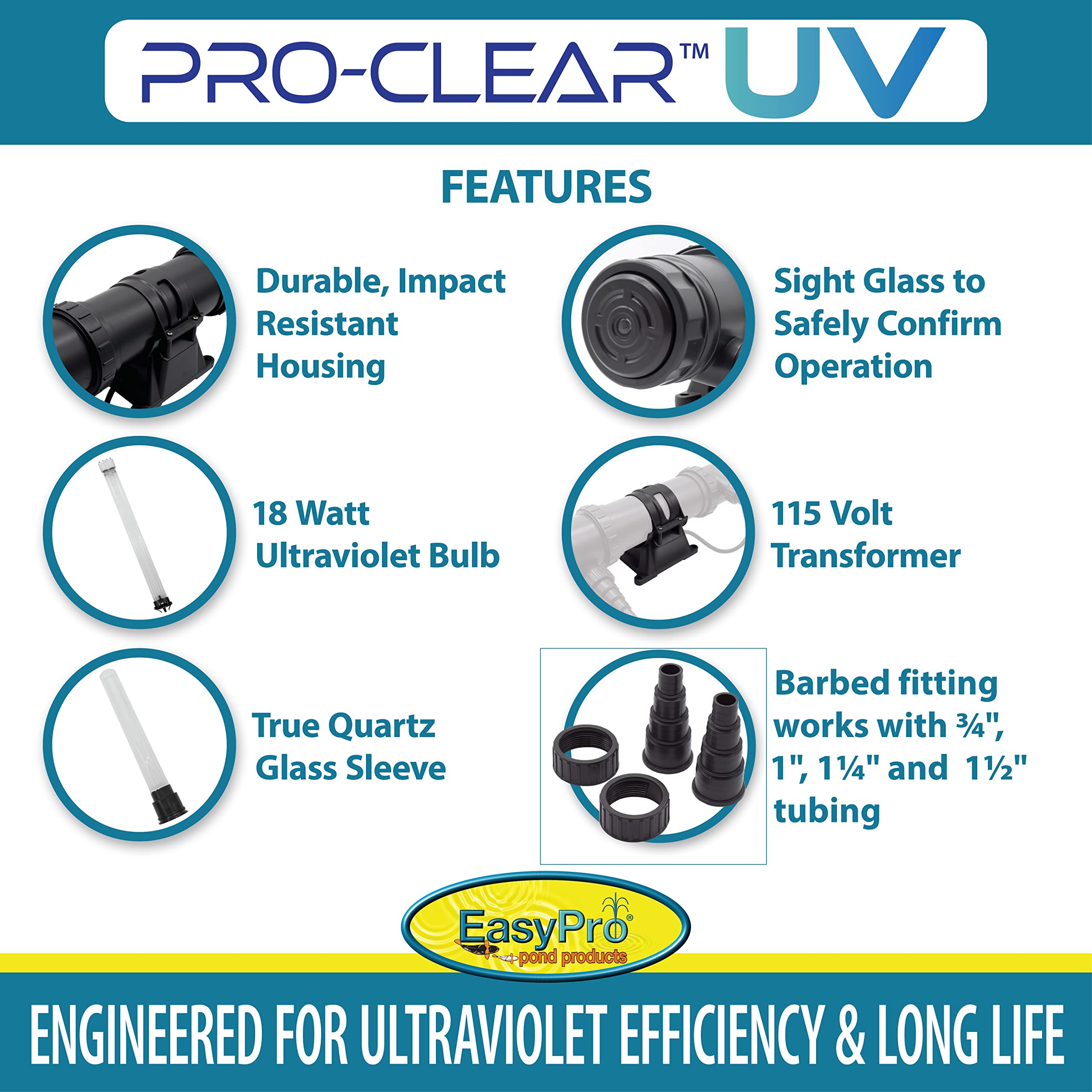 EasyPro PC18W PRO-Clear UV Clarifier / 18 Watt/Max. Flow Rate: 1800 GPH/Max/Pond: 2500 Gallons